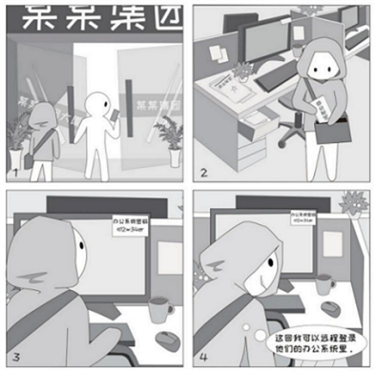 一旦别有用心者混入办公区域,桌面就成为他们的首要“狩猎”目标。在其找到目标文件或重要物品后,会对其进行拍照、复制、窃取。