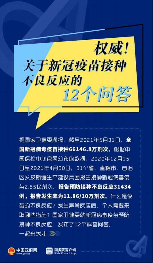 除了以上的问题,关于新冠疫苗接种不良反应的12个问题,也有了权威解答。