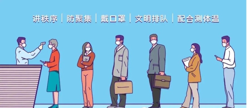 排队、付款、交谈、运动、参观时,要保持 1 米以上社交距离。