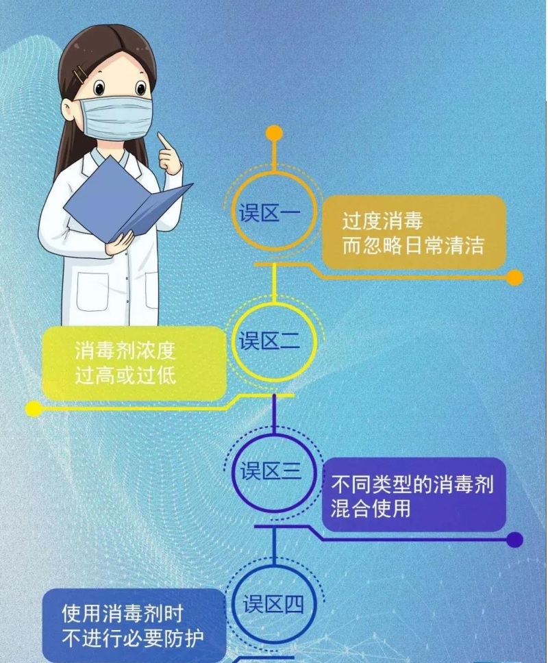 消毒是阻断病毒传播的有效方式之一,但不合理的消毒方式不仅起不到杀灭病毒的作用,反而可能会造成对身体或环境的伤害。因此,居家使用消毒剂过程中,有一些误区请大家注意。