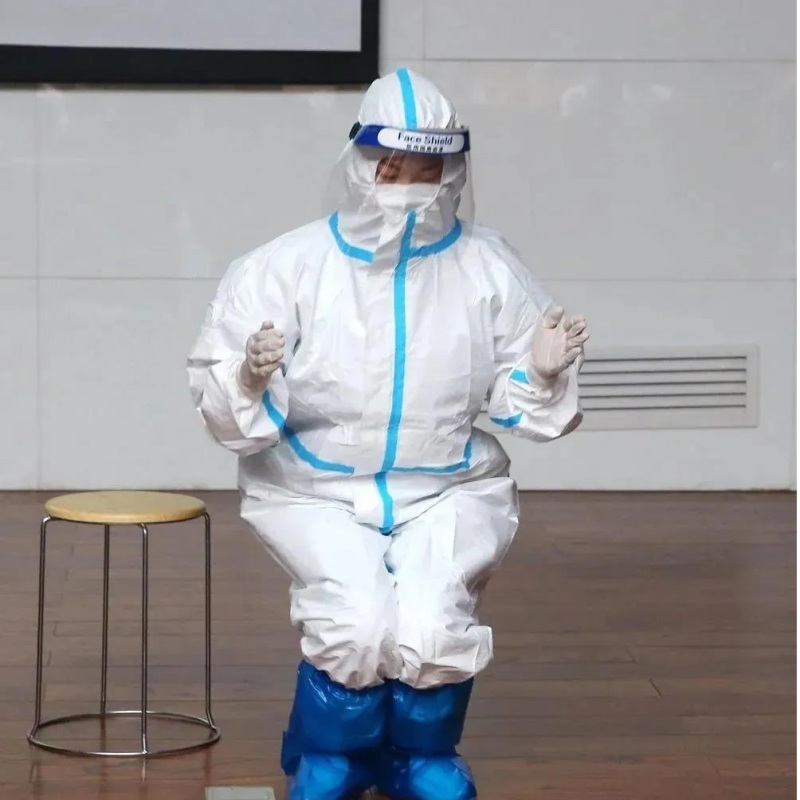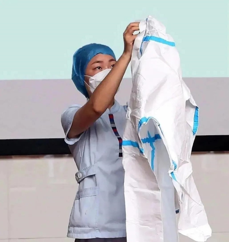 (1)通过上举双臂、弯腰、下蹲等动作,评估所选防护服是否合适,确保合适后方可进入隔离区;
