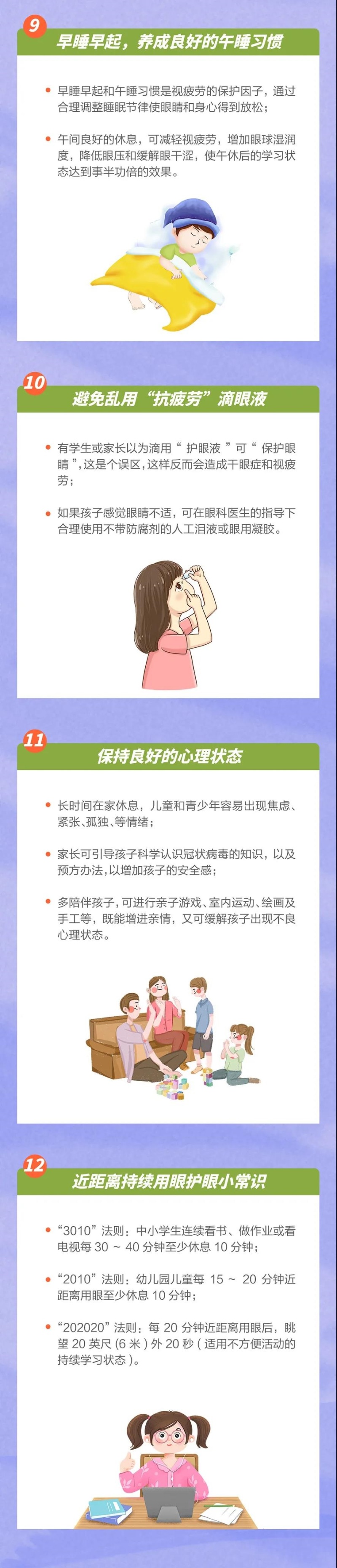 近期,根据疫情防控需要,西安中小学生居家停课不停学,统一采取线上教学,在此期间,学生使用电子产品的时间大大增加。为防止儿童青少年因长时间使用手机电脑等电子产品而引发眼睛近视,西安市中心医院眼科专家特别为儿童青少年科学用眼保护视力提出12条建议。