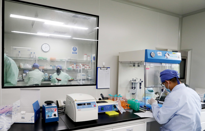 2021年9月6日,新冠流感联检试剂盒在上海投产分发,这是工作人员在实验室内进行产品验证。新华社记者 方喆 摄