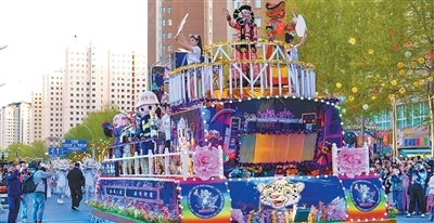 傍晚时分,青海西宁市城北区豹街开启花车巡游。 本报记者 曹继炜摄