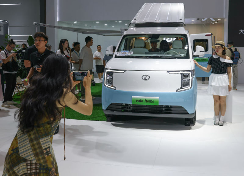9月5日,观众在智博会现场参观新能源房车。新华社记者 陈诚 摄
