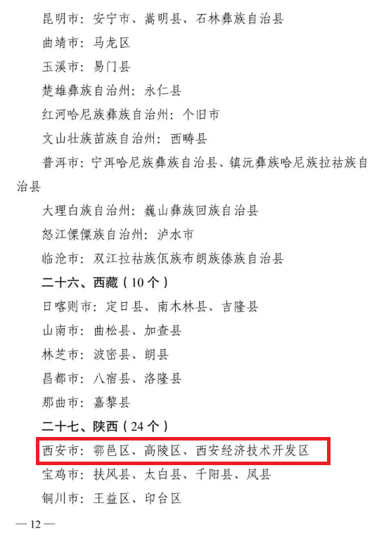 鄠邑区、高陵区、西安经济技术开发区