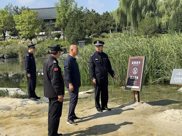 在金龙峡景区,民警联合景区管理方同步推进物理防护升级。除了详细查验救生器材的完好与否外,民警还认真检查防护栏的坚韧度,叮嘱工作人员在警示牌上新增反光条,确保夜间或阴天时,过往人员也能清晰看到安全提示。