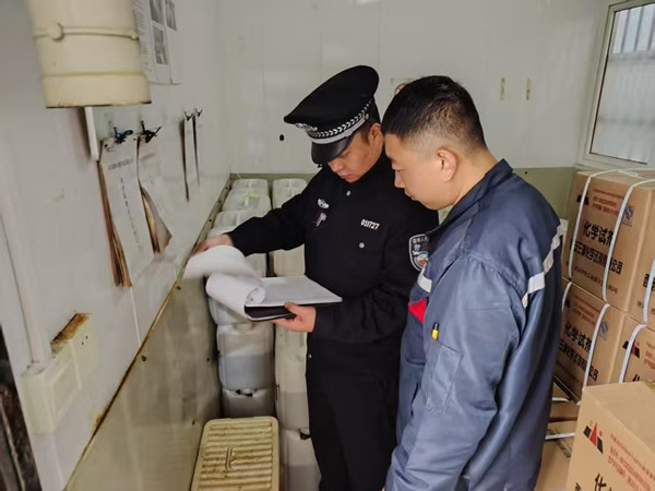 检查过程中,民警同步落实定人挂钩职责,与企业负责人深入交流,详细了解近期生产进度、内部管理流程及厂区治安状况,针对发现的台账登记不规范、库房巡查频次不足等问题,现场提出整改建议,督促企业严格落实危化品“五双”机制,细化内部安全管理制度,明确专人负责隐患整改跟踪。