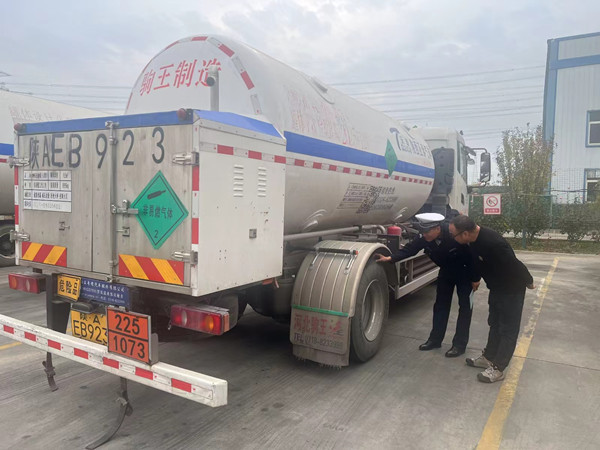 为进一步加强辖区危险化学品运输车辆的安全管理工作,不断提高危化品运输企业安全负责人及驾驶人的交通安全意识,全力抓好“冬季”道路交通事故预防工作,11月14日上午,公安鄠邑分局交管大队组织民警深入辖区陕西亚泰气体有限责任公司开展“三查、四督、两执法”暨交通安全宣传教育和检查工作。