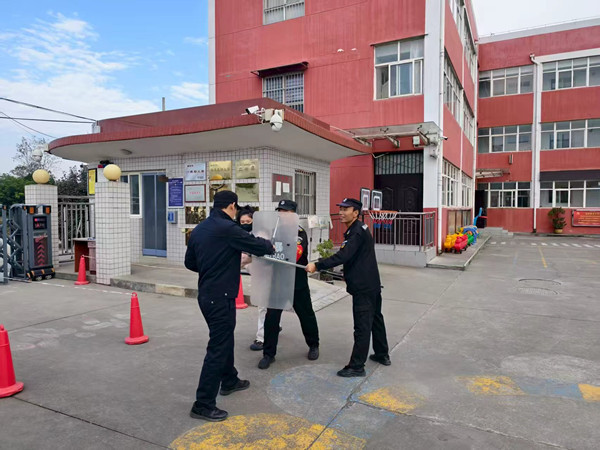 实操演练环节更是氛围热烈。民警现场演示了防暴盾牌、钢叉等防护器械的正确使用方法,细致拆解持械姿势、格挡技巧和协同配合要点。随后,保安队员们进行实操练习,民警逐一纠正动作偏差,手把手指导规范操作。模拟“持械歹徒闯入”场景中,保安队员们迅速响应、默契配合,运用所学技能成功完成处置,切实提升了实战能力。