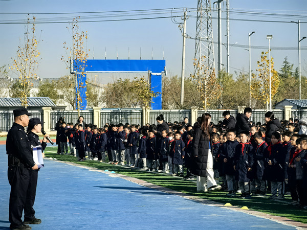 近日,公安鄠邑分局五竹派出所组织民警走进辖区西安外国语大学鄠邑实验小学,开展“金盾护苗・安全‘童’行”主题宣讲活动。针对1-4年级学生认知特点,派出所采用“互动赢警察小熊”形式,将安全知识转化为生动“必修课”,让全校师生在欢乐中筑牢安全防线。