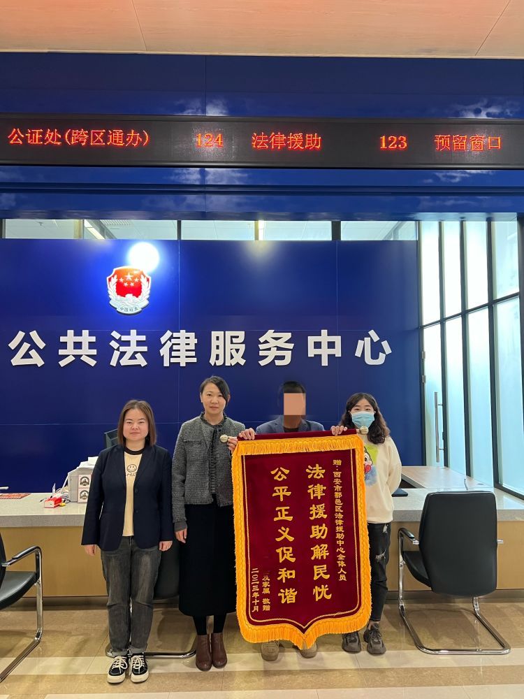 2023年10月25日,鄠邑区法律援助中心收到了一份特殊的礼物,受援人李某将一面“法律援助解民忧,公平正义促和谐”的锦旗送至鄠邑区公共法律服务中心法律援助窗口,对鄠邑区法律援助中心表示由衷的感谢。