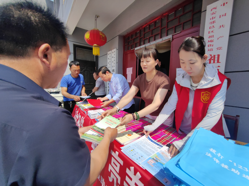 活动现场,通过悬挂宣传条幅、摆放咨询台,现场为群众发放《中华人民共和国宪法》《中华人民共和国民法典》《保障农民工工资支付条例》和《中华人民共和国反有组织犯罪法》等宣传资料和法治手提袋,法援中心工作人员及陕西秦盈律师事务所林西昌律师在咨询处为群众进行现场法律咨询等方式,进行普法宣传。