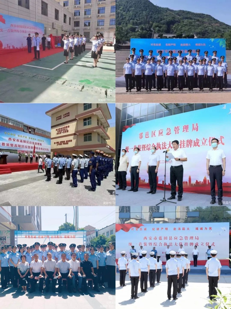 各区县依据市委编办关于设立区县应急管理综合执法大队有关批复及时制定印发“三定”规定,出台区县调整应急管理局所属事业单位机构编制有关事项的通知,及区县应急管理系统人员转隶办法等一系列改革配套文件,严格按照省、市明确的编制控制数和人员划转标准、划转程序完成编制配备、领导任命、人员划转等各项工作。同时,明确区县应急管理综合执法队伍以本级应急管理部门名义统一执法,加强镇街执法力量,明确由镇街综合行政执法机构统一承担基层应急相关执法职能,推行“一支队伍管执法”,健全完善基层应急管理执法体制机制。截至目前,全市13区县应急管理综合执法大队已全部组建到位,13个区县应急管理部门举行了统一着装及执法大队挂牌成立仪式。