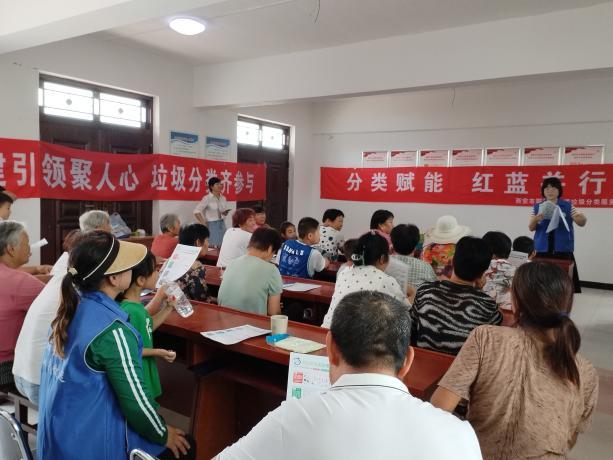 为深入推进生活垃圾分类工作开展,提高群众垃圾分类的积极性和主动性,规范有害垃圾和可回收物的投放、收集、运输等环节。7月25日,鄠邑区生活垃圾分类中心联合玉蝉街道在晋侯村开展“分类赋能 红蓝并行”垃圾分类主题宣传活动。
