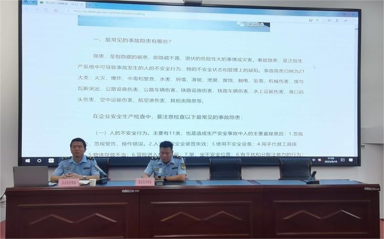 区应急管理局执法人员主要从全员安全生产责任制解读、常见事故隐患剖析、危险和有害因素如何辨识、常见灭火器类型及使用方法等方面对安全知识进行讲解,并对网格员今后工作中遇到突发事件应对措施进行经验交流。