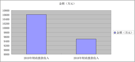 2019年度财政拨款收入10610.41万元,较上年增加1119.06万元,增长10.5%,主要原因是工资津贴、目标责任奖增长、辅警工资增加等。