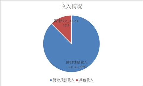 2019年收入合计150.44万元,其中:财政拨款收入131.71万元,占87.7%;事业收入0万元,占0%;经营收入0万元,占0%;其他收入18.73万元,占12.3%。