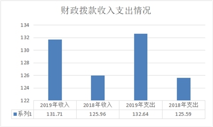2019年财政拨款收入131.71万元,较2018年增加10.31,主要是从2019年开始单位部分社保由单位自行缴纳,财政不再代扣代缴。