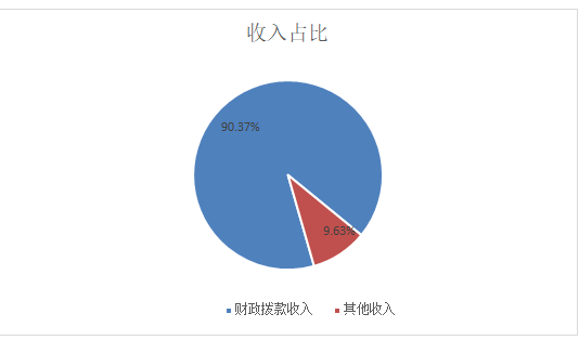 2019年收入合计104.65万元,其中:财政拨款收入94.57万元,占90.37%;事业收入0万元,占0%;经营收入0万元,占0%;其他收入10.07万元,占9.63%。