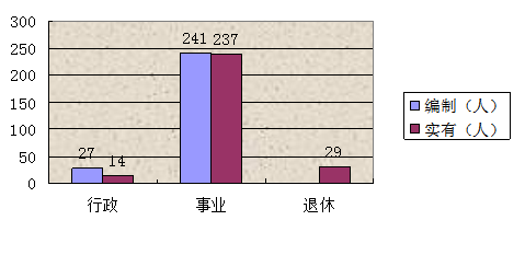 截止2019年底,本部门人员编制268人,其中行政编制27人、事业编制241人;实有人员251人,其中行政14人、事业237人。单位管理的离退休人员29人。