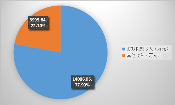 2019年收入合计18081.89万元,其中:财政拨款收入14086.05万元,占77.90%;其他收入3995.84万元,占22.10%。