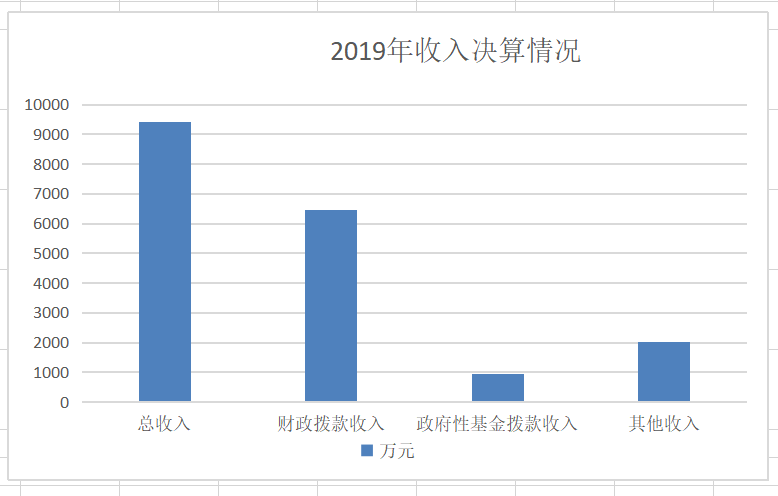2019年收入合计9419.48万元,其中:财政拨款收入6456.67万元,占54%;政府性基金拨款收入953.27万元,占10%;事业收入0万元,占0%;经营收入0万元,占0%;其他收入2009.54万元,占21%。