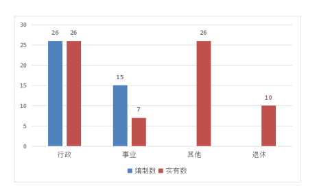 截止2019年底,本部门人员编制41人,其中行政编制26人、事业编制15人;实有人员59人,其中行政26人、事业7人单,其他人员26人。单位管理的退休人员10人。
