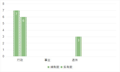 截止2019年底,本部门人员编制7人,实有人员6人。单位管理的离退休人员3人。