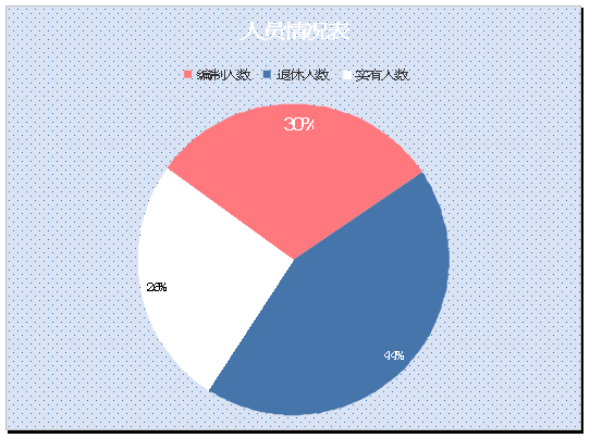 截止2019年底,本部门人员编制32人,其中行政编制23人、事业编制9人;实有人员27人,其中行政23人、事业4人。单位管理的离退休人员46人。