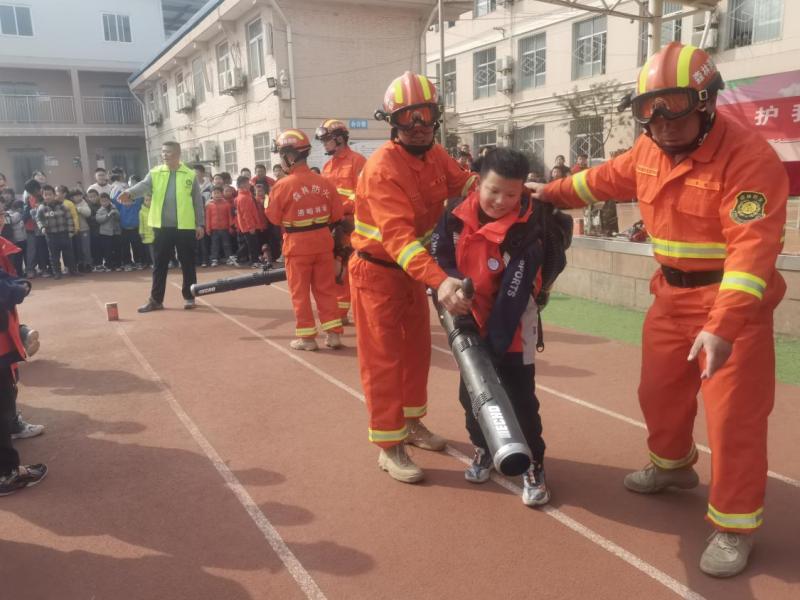 开展扑火机具展示,向同学们介绍森林防火常用的扑火机具,并组织扑火队员现场演示;同时邀请孩子们上来实操感受,旨在通过这种方式进一步提升同学们的森林防火意识。