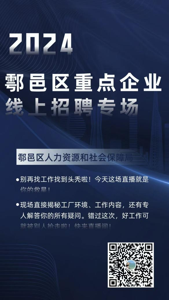 为进一步落实好全省“三个年”活动部署,深入推进“八个新突破”和全区“为民实事”重点任务,按照西安市重点企业精准招聘服务工作安排,鄠邑区人社局拟于11月29日下午举办西安市鄠邑区助力重点企业精准招聘服务直播带岗活动。