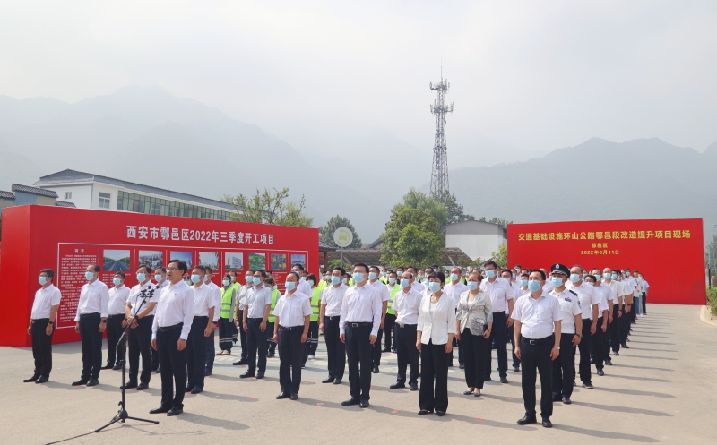 8月11日上午,西安市2022年三季度重点项目开工活动鄠邑分会场,在交通基础设施环山公路鄠邑段片区综合改造提升项目现场(石井街道蔡家坡村中心路北口)举行。鄠邑区委书记李化,区委副书记、区长汪国栋在西安市2022年三季度重点项目开工活动主会场参会。区人大常委会主任鱼成龙、区政协主席李军考、区委副书记任涛等区级领导参加鄠邑分会场开工活动。