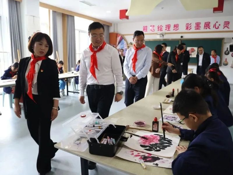 在滨河荣华实验小学的“六一”国际儿童节少先队主题队日示范活动现场,少先队员们首先为各位领导们系上鲜艳的红领巾,并敬少先队礼。在小讲解员引导下,大家了解了学校基本情况。与此同时,孩子们用艺术展演抒发对党和祖国的无限热爱、对美好未来的无限憧憬。与会各领导也为孩子们送上节日礼物,并希望孩子们健康快乐成长,刻苦学习知识,磨炼坚强意志,锻炼强健体魄,努力成为能够担当民族复兴大任的时代新人。