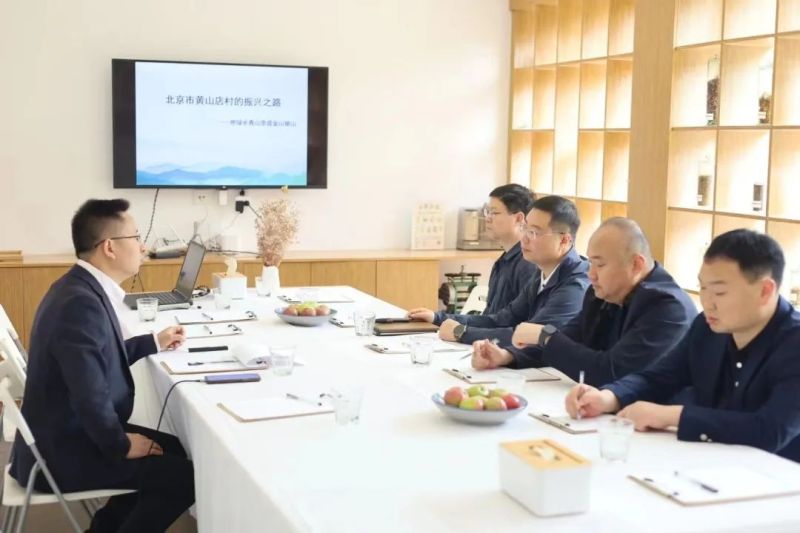 考察首站,汪国栋一行来到北京市房山区黄山店村。黄山店村是首批全国乡村旅游重点村,该村通过统一规划、统一投资、引进专业机构统一运营等方式,已累计投资4000余万元用于盘活闲置房屋开办精品民宿,年实现收入1200余万元,收益400余万元,全村劳动力通过民宿业的发展实现了100%就业率。汪国栋一行实地调研隐居乡里姥姥家等民宿,与隐居乡里联合创始人任涛及黄山店党支部书记张进刚就村集体示范引领、民宿发展模式及消费场景搭建、丰富产业业态、促进村集体增收等方面进行深入交流,就实现跨区域合作进行了深入洽谈。