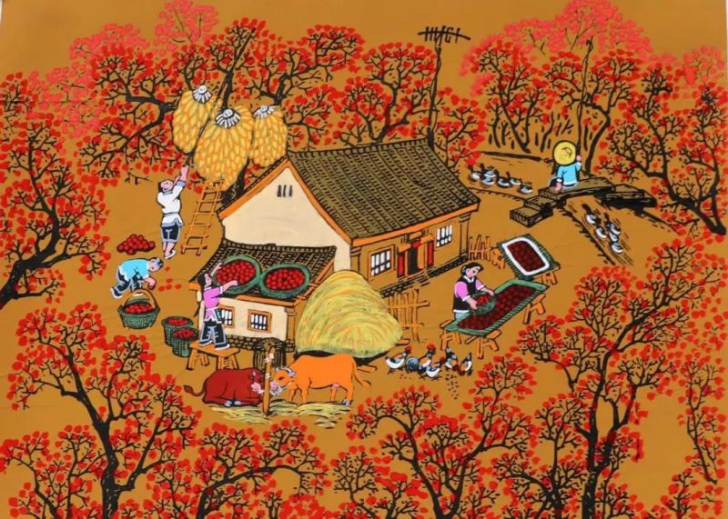 “首先要给人留下深刻的视觉记忆。”西安东韩有礼农业科技有限公司负责人王勃说,秦岭的山水鄠邑的画,大自然的艺术进农家。“户县农民画”是陕西具有鲜明地方特色的文化品牌和对外交流的亮丽名片,在礼盒包装上融入农民画元素或许是个不错的选择。“我们从张青义老师的作品中选择了描绘春、夏、秋、冬四景的农民画作为主创图。”
