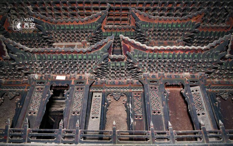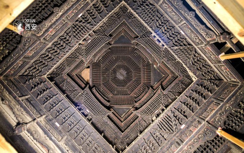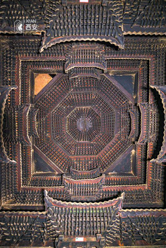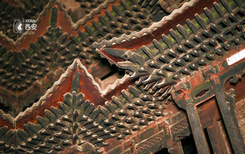 无数小构件交织成密集的檐椽,不禁让人遥想其几百年前富丽堂皇的模样。