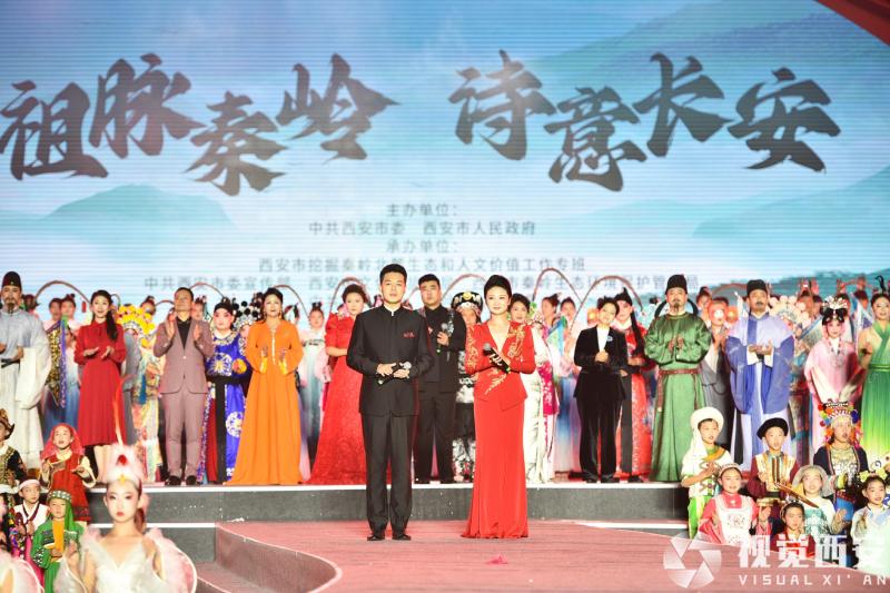 如果说秦腔的演出仿佛穿越时光的呐喊,而诗意长安又有着别样的浪漫。在唐诗里的长安,古今同辉的诗人们荡气回肠,一首首经典传颂,一声声深情婉约,一句句拍案叫绝,一幕幕梦绕魂牵……不但点燃了现场气氛,也点亮了长安诗意璀璨。涵养着世界人文之都和中华现代文明的光辉,从半坡遗址到现代文明,古人今人同沐秦岭恩泽,中华民族现代文明之辉光耀古今。