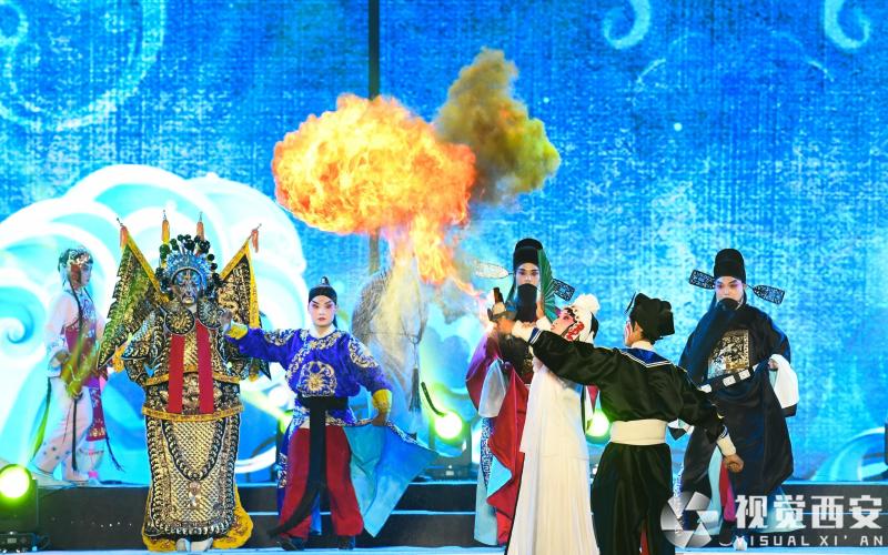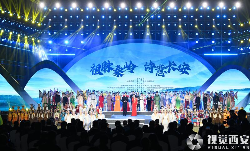以夜空为天幕、以秦岭为背景,10月13日晚,备受瞩目的“祖脉秦岭 诗意长安”主题文化演出在西安鄠邑区天桥湖震撼上演。