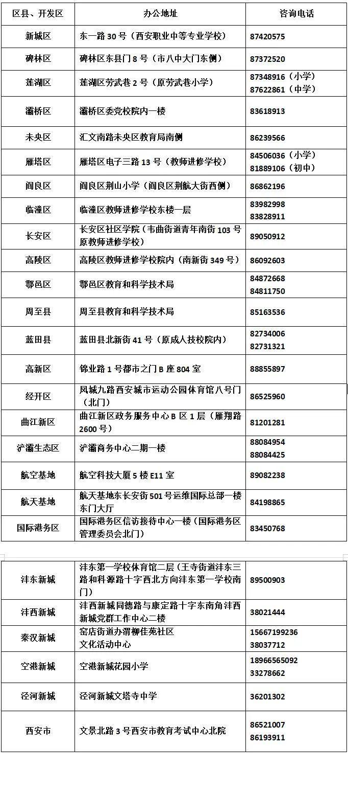 我市各区县、开发区招生入学接待协调中心办公地址和咨询电话:
