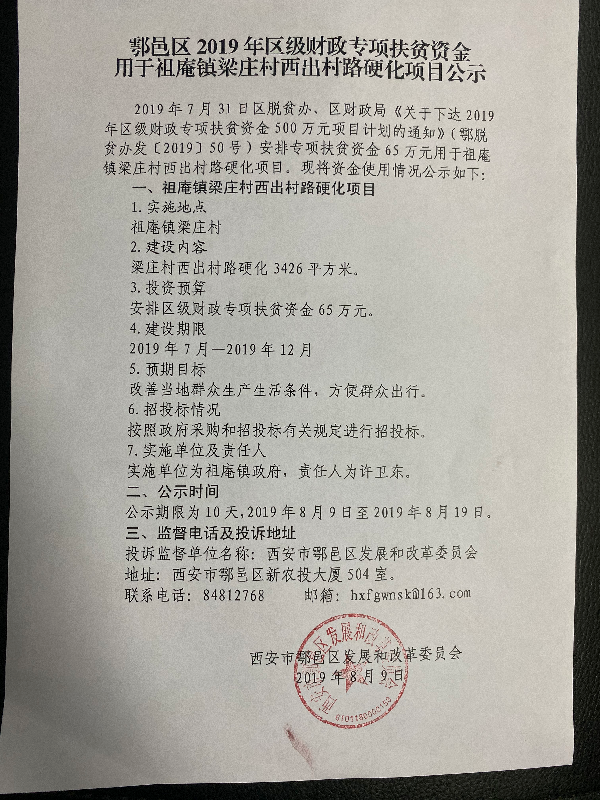 用于祖庵梁庄村西出村路硬化项目公示