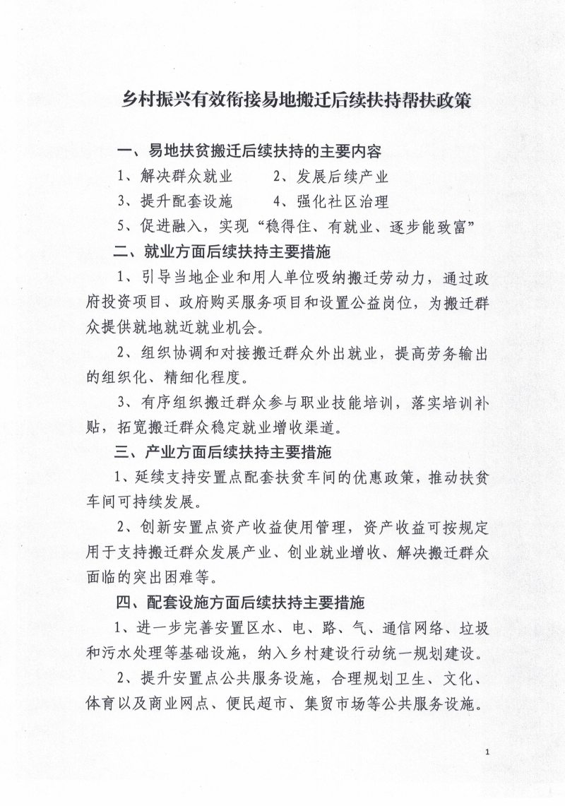 乡村振兴有效衔接易地扶贫搬迁后续扶持帮扶政策