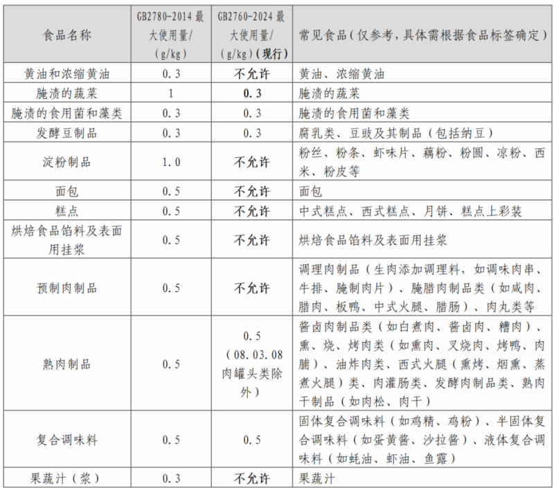 (注:脱氢乙酸及其钠盐使用范围仅有腌渍的蔬菜、腌渍的食用菌和藻类、发酵豆制品、熟肉制品、复合调味料)
