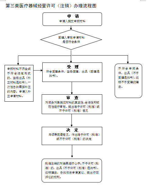 2、申请人通过系统提报申请后,工作日电话至受理部门预约办理或带经办人授权证明和《医疗器械经营许可证》原件到行政审批部门。受理部门进行形式审查,并作出是否受理的决定。符合要求发放《受理通知书》,不符合要求发放《不予受理通知书》。