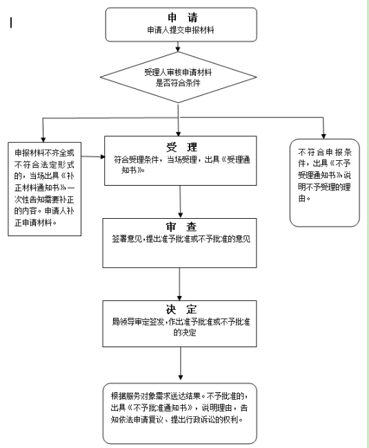 2、行政审批部门对申报材料进行审核,对纸质和网上填报资料齐全、符合法定形式的申请人发给《受理通知书》;