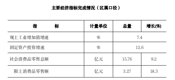 1-3月,区属规模以上工业增加值同比增长7.4%;区属固定资产投资同比增长12.6%;区属社会消费品零售总额15.76亿元,同比增长9.2%。