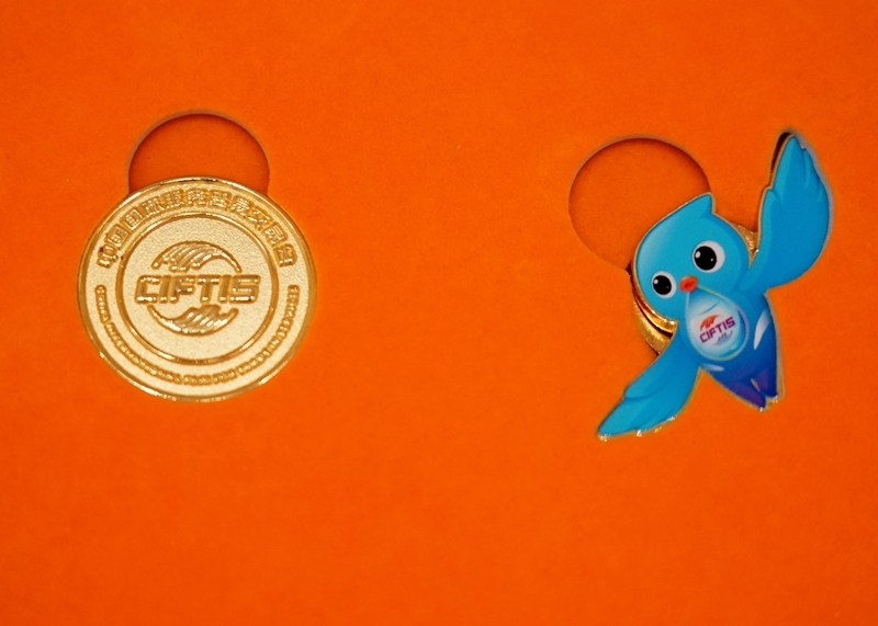 这是8月11日在2025年服贸会媒体吹风会现场拍摄的服贸会特许商品。