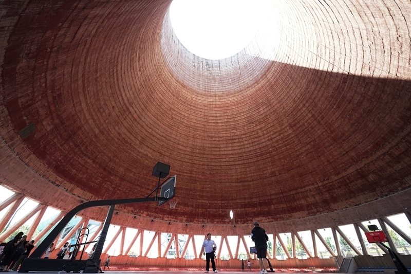 8月11日拍摄的首钢园冷却塔“篮球公园”。