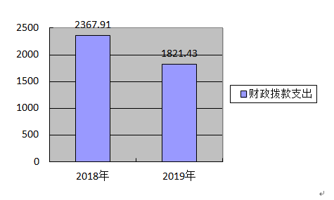 (2)2019年度支出总计1821.43万元,较上年减少546.48万元,下降23%。原因为财政开支缩减。项目减少。