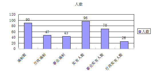 截止2019年底,本部门人员编制90人,其中行政编制47人、事业编制43人,实有人员96人,其中行政26人、事业70人。单位管理的离退休人员20人。